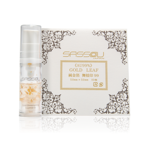 Use once a week. Put gold sheet paper on target area on face, gently massage with moderate amount of Gold Shimmering Essence EX. It results in penetrating the gold leaf into skin with the heat on your finger tips that eventually enhance detoxifying process and promote luminosity. |